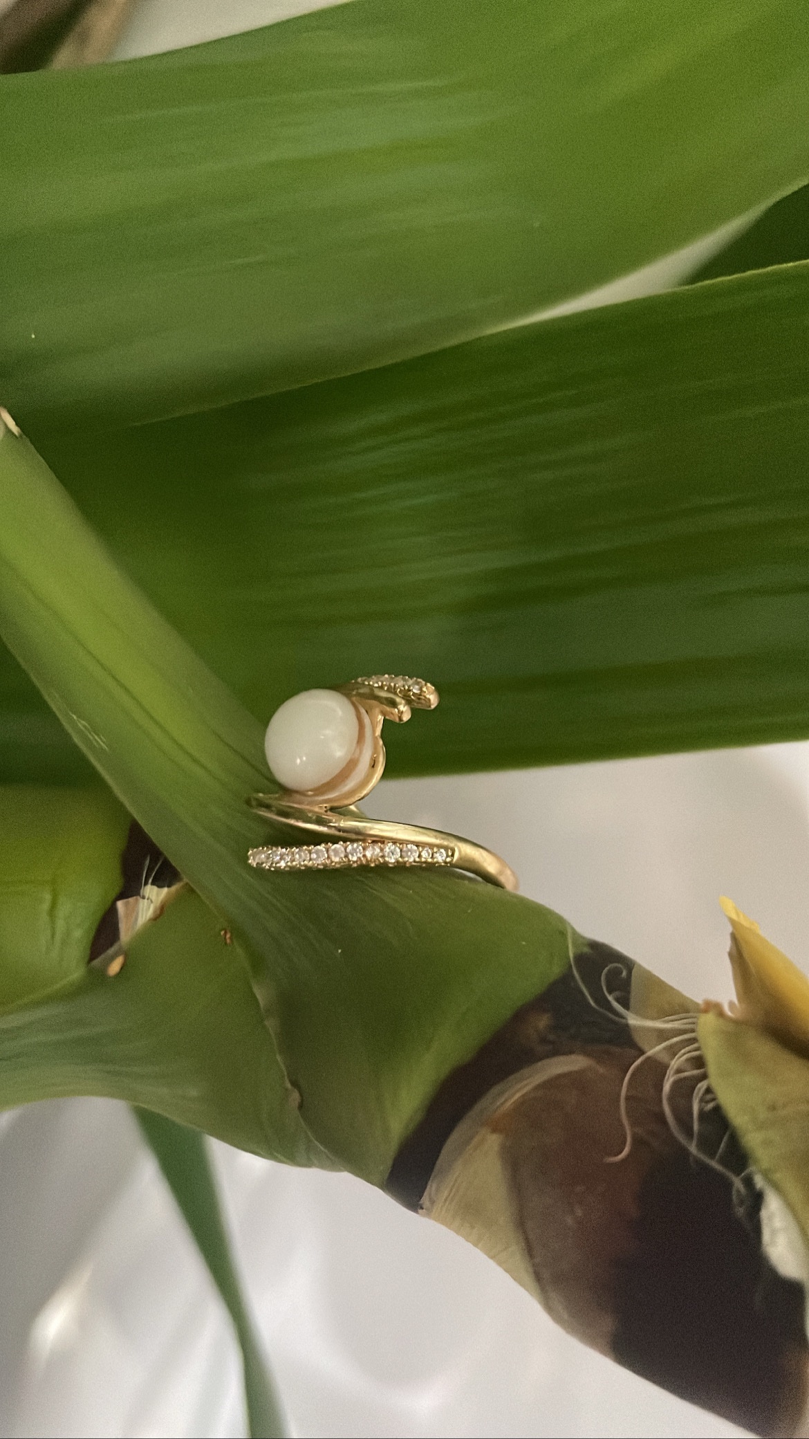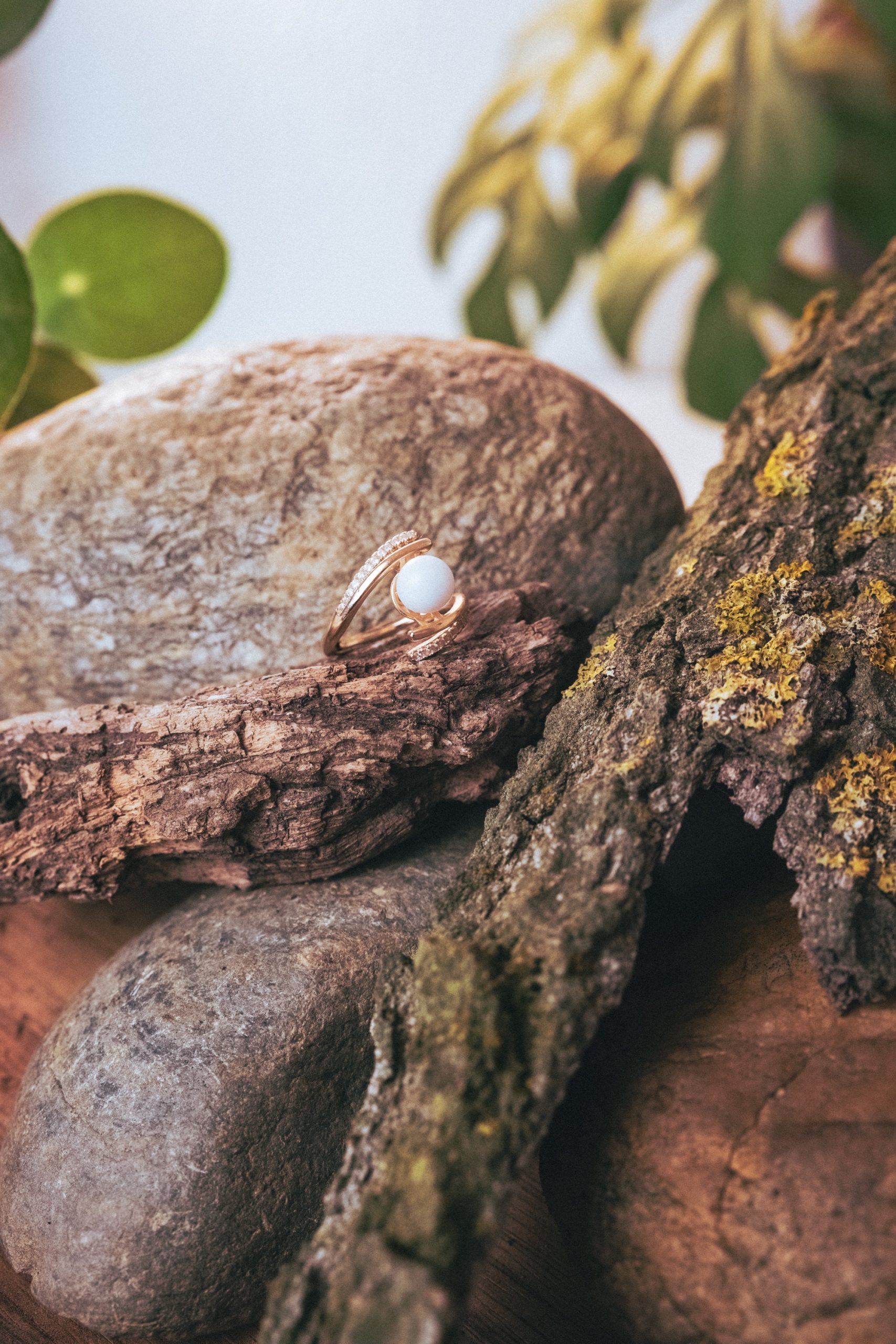 La bague Lola est montée et livrée sur son support réglable en plaqué or.